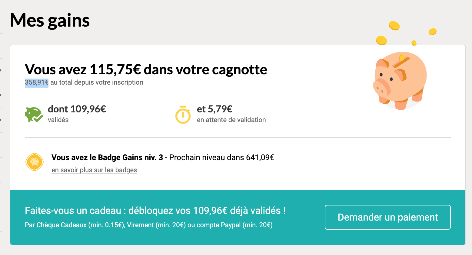 返现的钱将存到你在 iGraal 的个人账户中,可以发现博主目前账户里有 115.75 欧。从博主开始用这个返现网站到现在,已经白白赚了近 360 欧。